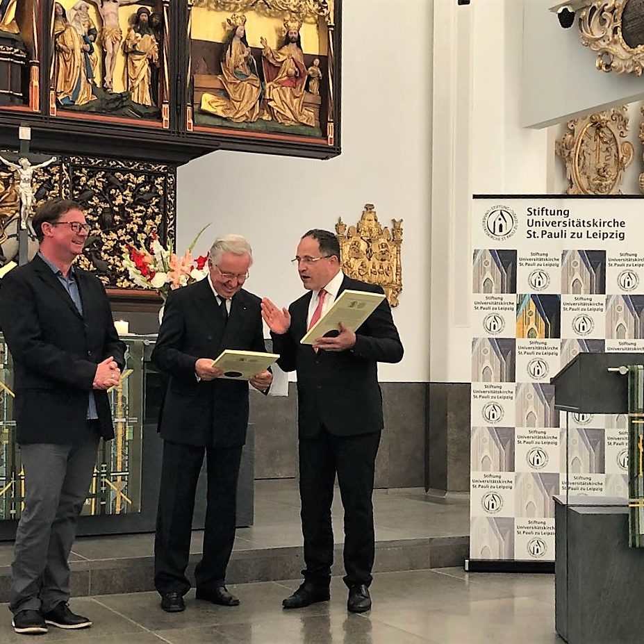 Spende zu Gunsten der Schwalbennestorgel anläßlich des 50. Jahrestages der Sprengung der alten Universitätskirche / Verleihung der Paulusmedaille